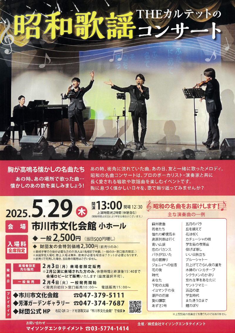 - THEカルテットの昭和歌謡コンサート【5月29日公演】昭和の時代にタイムスリップ
