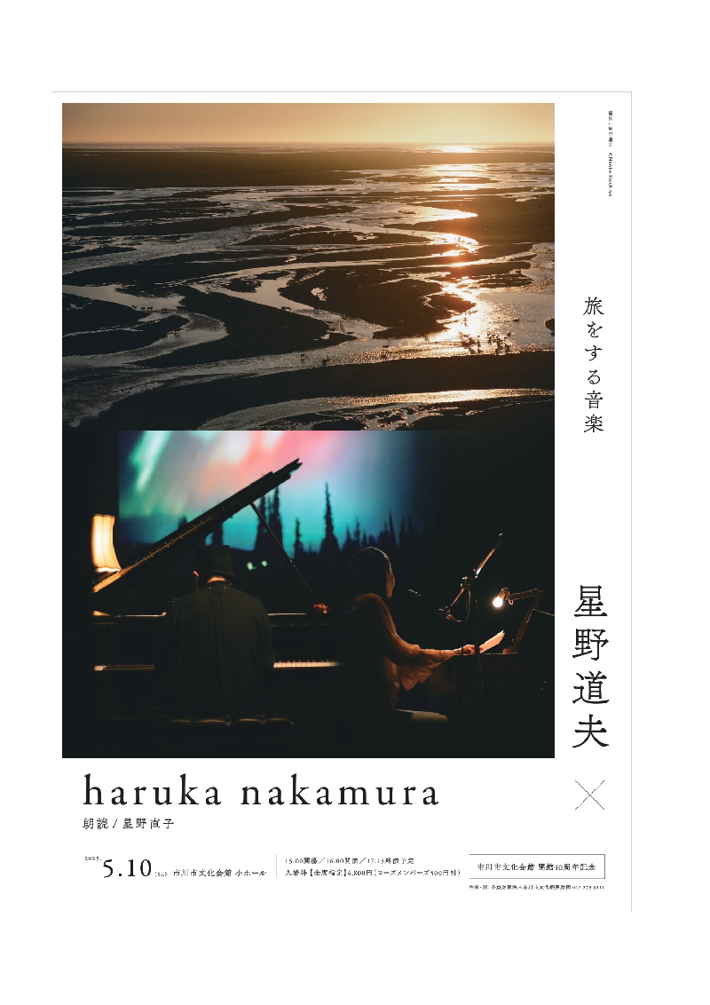 そして今回はいよいよ、星野道夫が生まれた故郷・市川にて。写真にインスピレーションを受けたピアノ演奏と共に、星野道夫の言葉を星野直子が朗読します。
