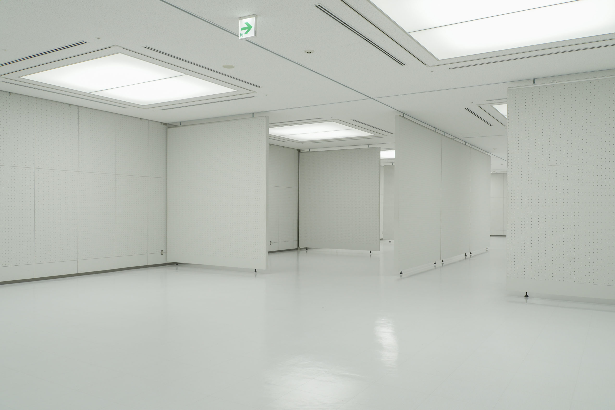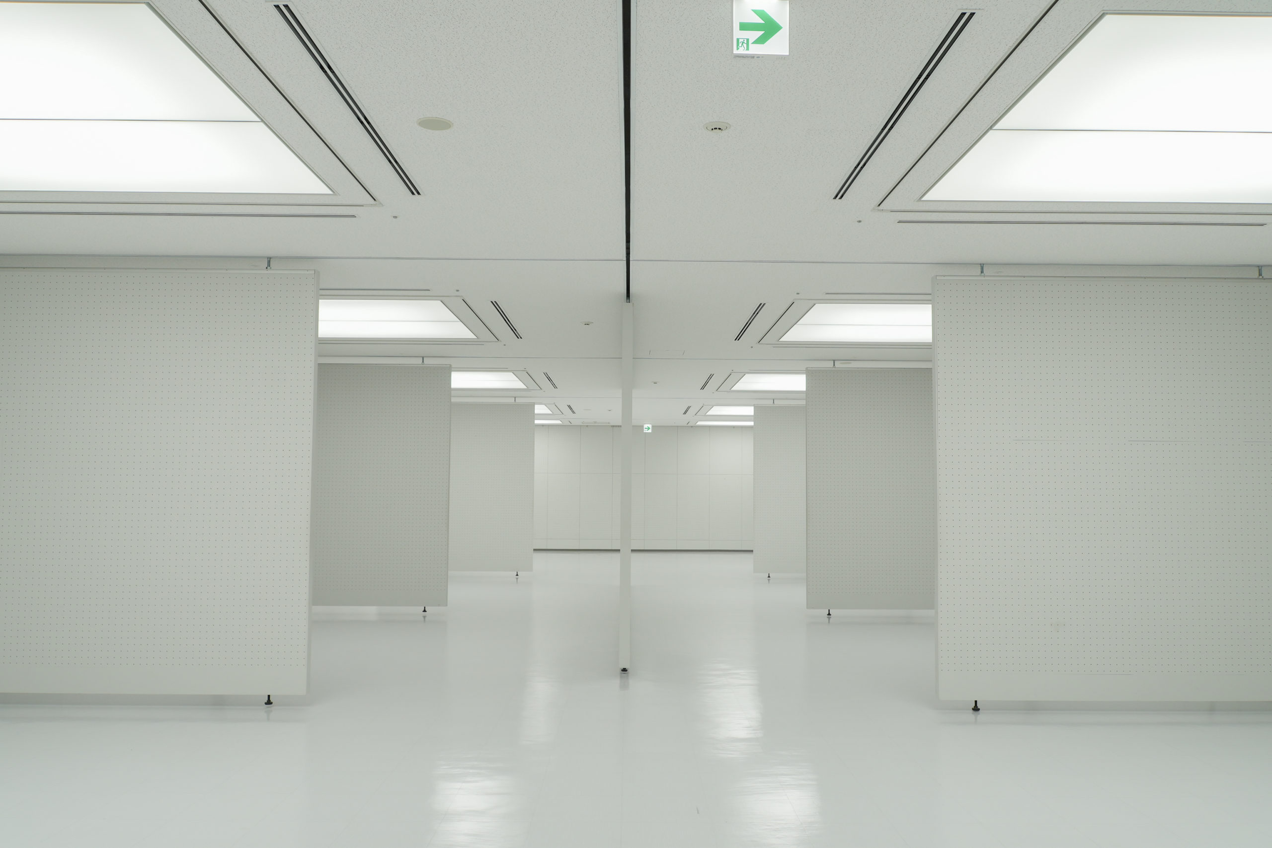 展示台、机、可動パネル(W3.00m×H3.44m)13枚、展示用スポットライト