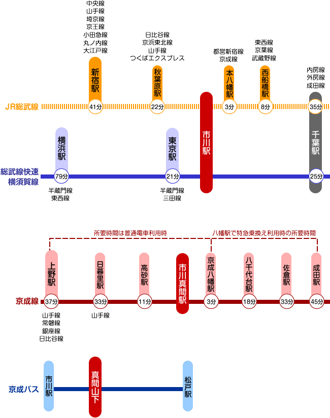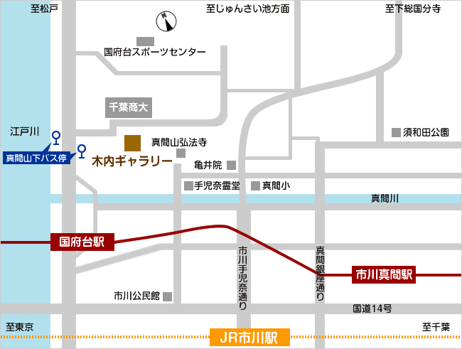 JR線JR市川駅北口バス停1番乗り場 松11 松戸駅行きバス乗車「真間山下」下車徒歩5分